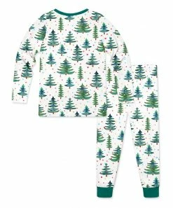 Hot Sale 🔥 Millie Loves Lily White & Green Tree Farm Pajama Set – Toddler & 👧 Girls For Kids ⭐