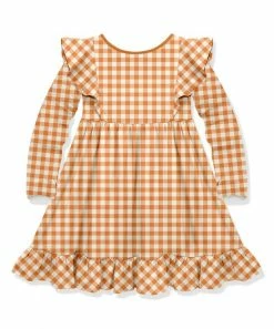New 😍 Millie Loves Lily Orange Gingham Turkey Long-Sleeve A-Line 👗 Dress – 👧 Girls For Kids 🛒