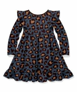 Promo 😍 Millie Loves Lily Gray Blue Leopard Ruffle A-Line 👗 Dress – Toddler & 👧 Girls For Kids 🔥
