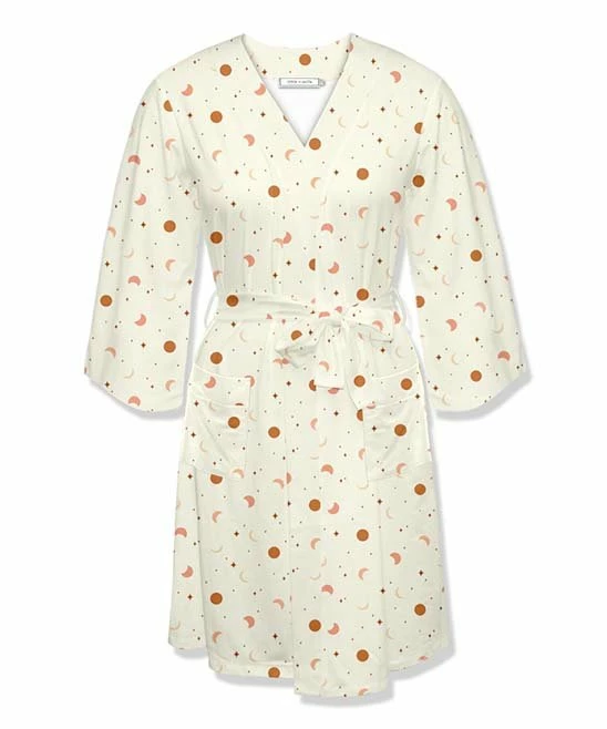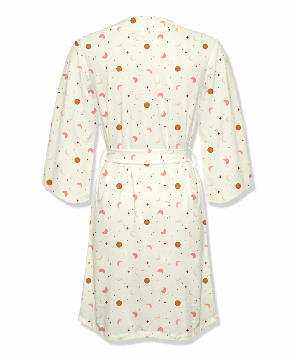 Robe featuring a moon and stars print, handy front pockets and stretch-infused fabric.