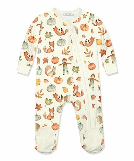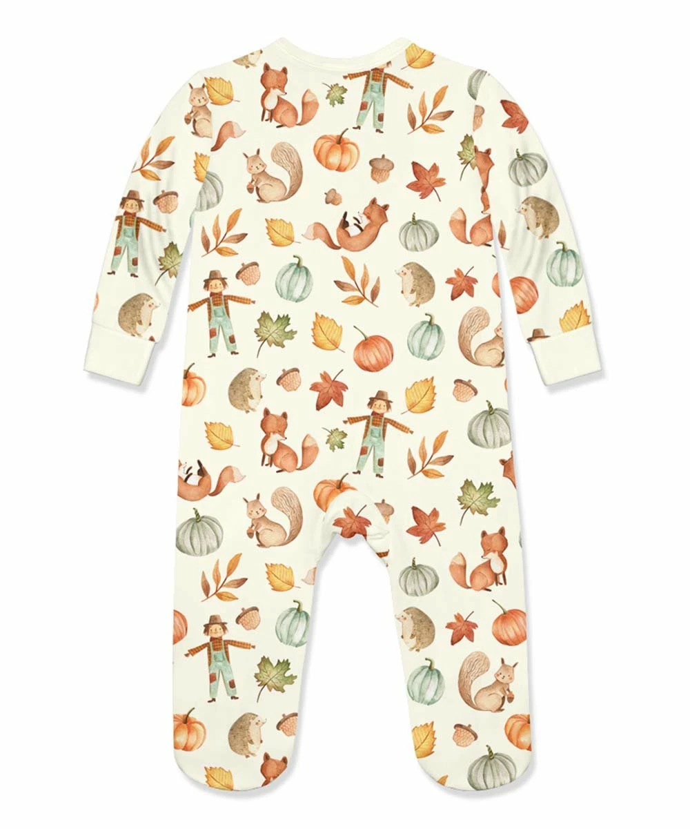 Made from a stretch-infused fabric, this zip-closure footie is machine washable and features an autumnal print.