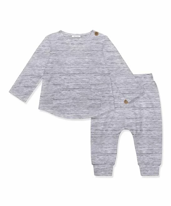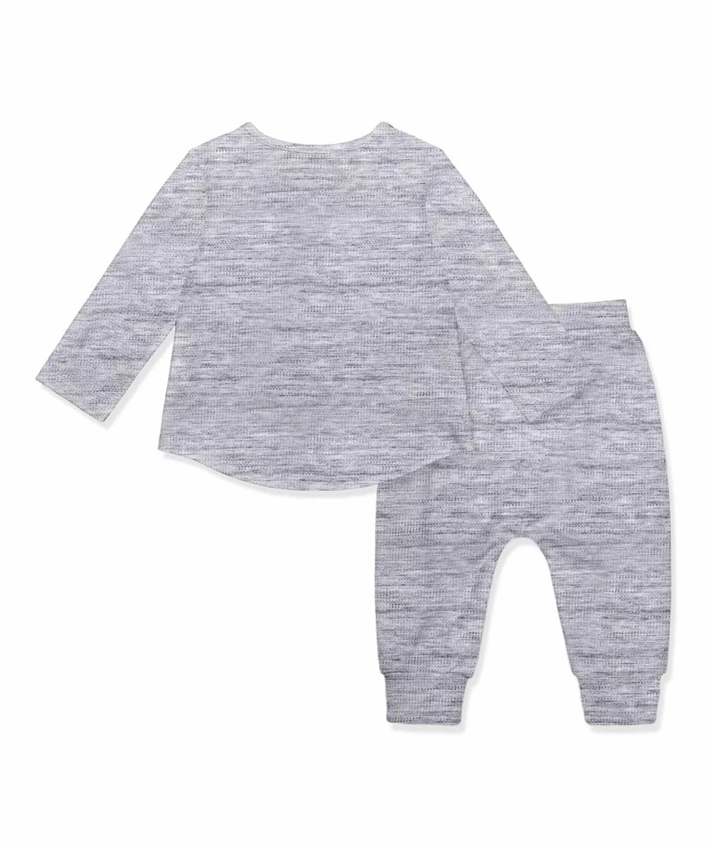 - Includes heather gray long-sleeve top and joggers (two pieces total)