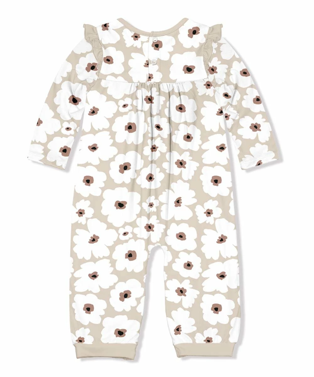 Playsuit featuring a slight ruffle-trim extending down from the shoulders and stretch-infused fabric.