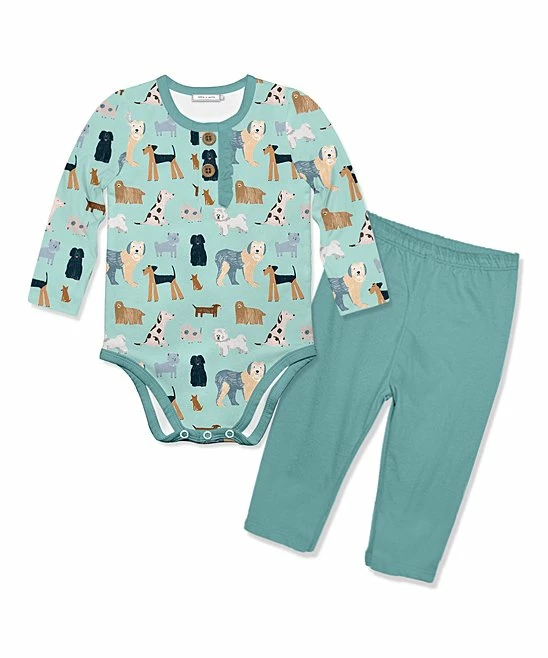 - Includes a mint dog bodysuit and Nile blue leggings (two pieces total)