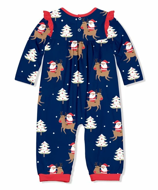 Merry days await your little one with this playsuit that flaunts a festive print and ruffled shoulders. Handy back and bottom snaps set you up for jollier dressing and diapering.
