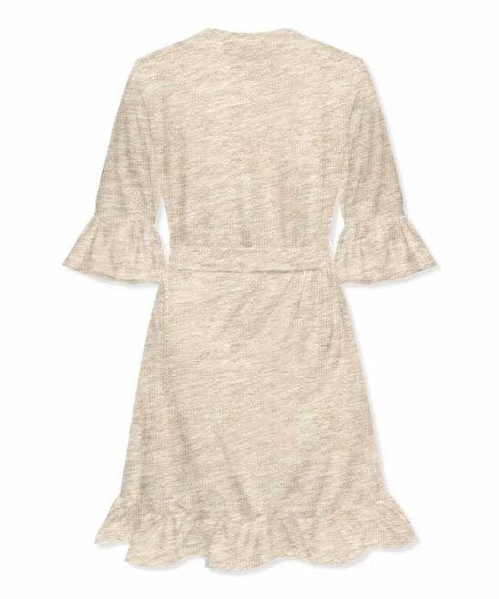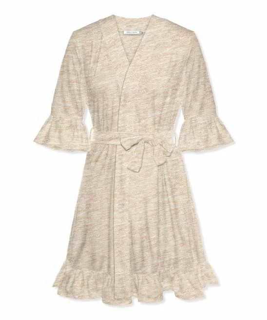 Promo ⭐ Little Millie Oatmeal Heather Waffle-Knit Ruffle-Hem Robe – πŸ‘© Women πŸ””