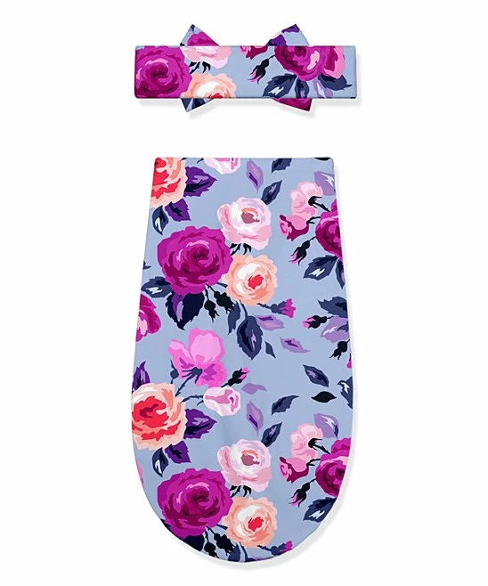 Baby stays comfortably-tucked in this swaddle sack. It has a floral pattern and matching bow headband for cute looks.