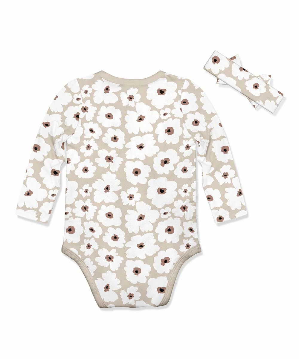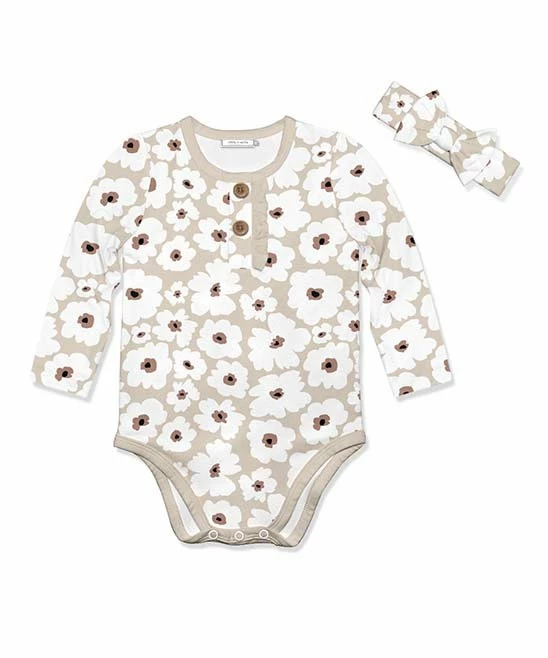 Bodysuit and headband set featuring a short button placket and a playful bow accent.