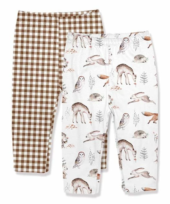 - Includes one pair of white and light brown leggings and one pair of white and light brown gingham leggings (two pieces total)