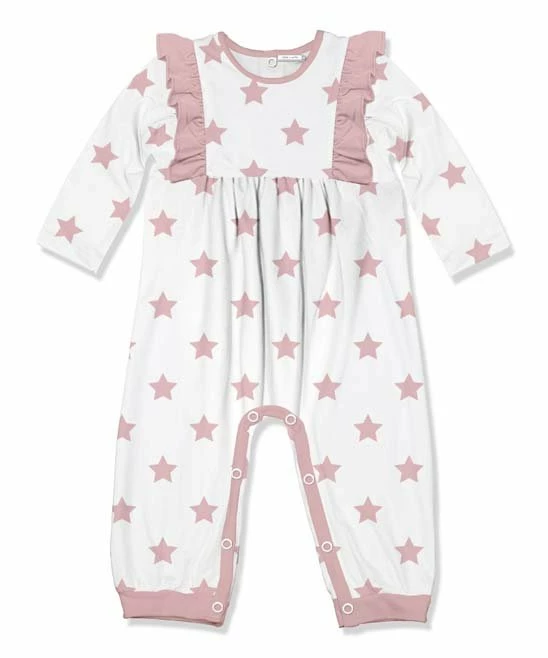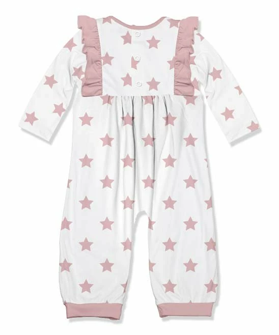 Hot Sale πŸ‘ Little Millie White & Pink Stars Ruffle-Accent Long-Sleeve Playsuit – Infant For Baby & Maternity ❀️