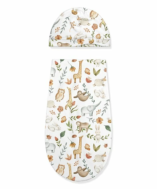 Keep Baby cozy and comfortable in this swaddle sack and beanie. A safari animal pattern adds adorable charm.