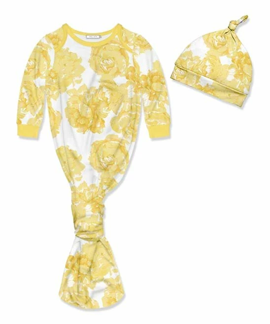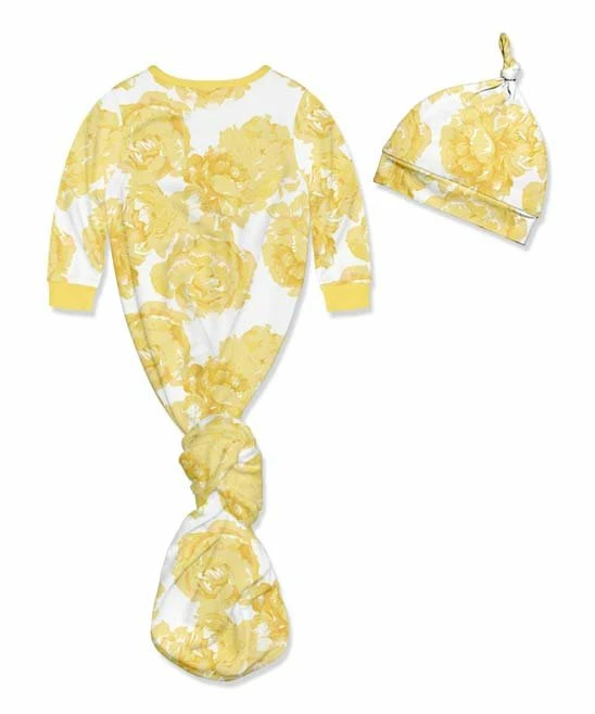 - Includes white and yellow rose knotted gown and matching knot-tie beanie (two pieces total)
