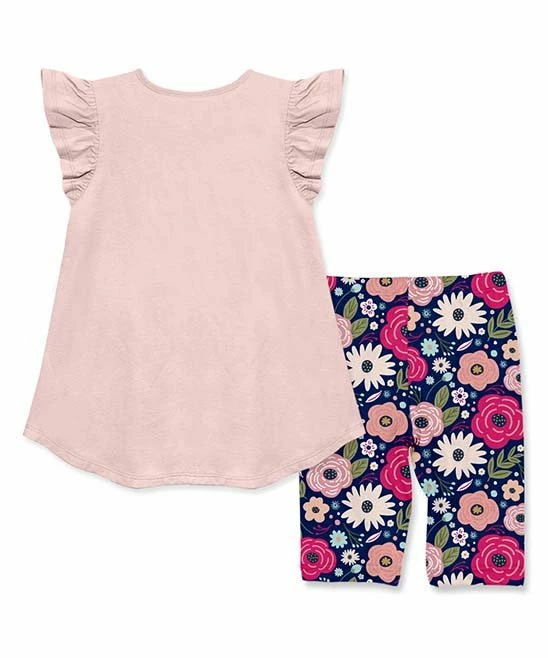 Fill out your little oneβs mix-and-match collection when you bring this charming set that flaunts a flowy, angel-sleeve top and coordinating bike shorts.