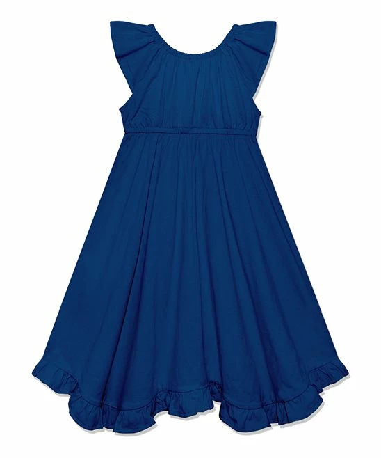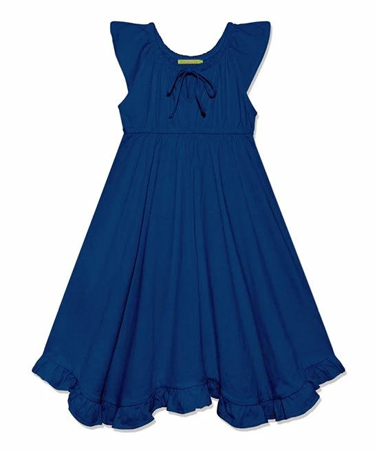 A playful, angel-sleeve dress for your little one featuring a ruffle hem, breathable cotton fabric and a bow neckline.