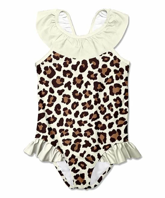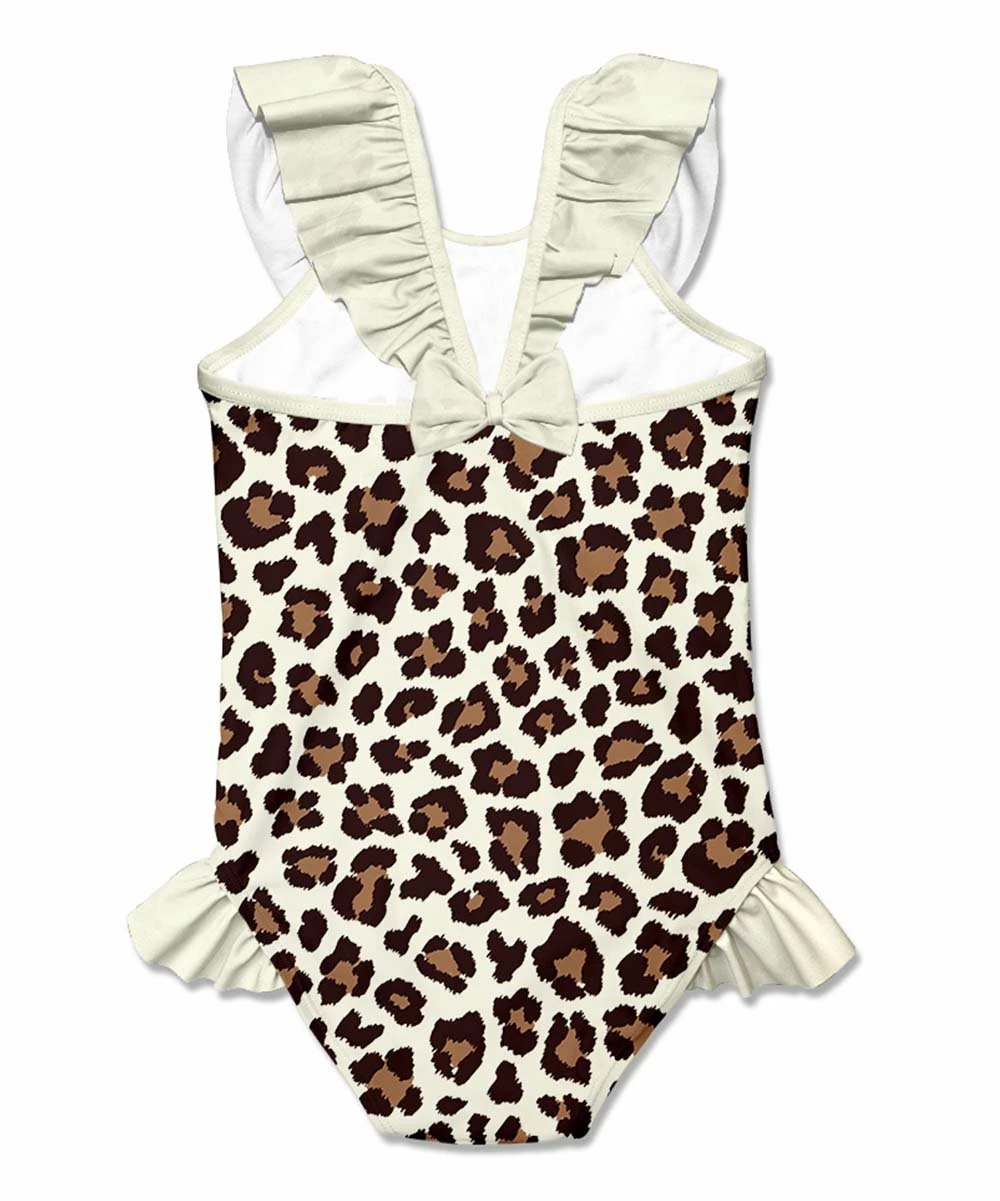 Prepare your little swimmer for a splash of fun in this one-piece with leopard patterns, a yoke design and ruffle details. This piece is rated UPF 50+ to provide UV protection.