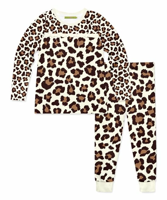 - Includes cream leopard top and cream leopard pants (two pieces total)