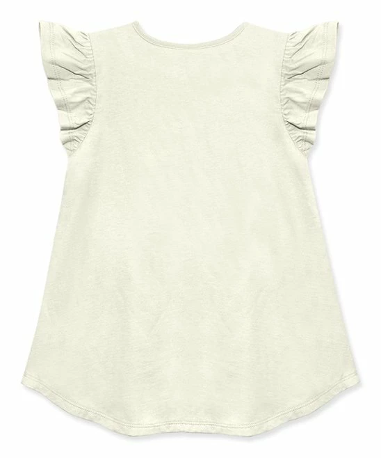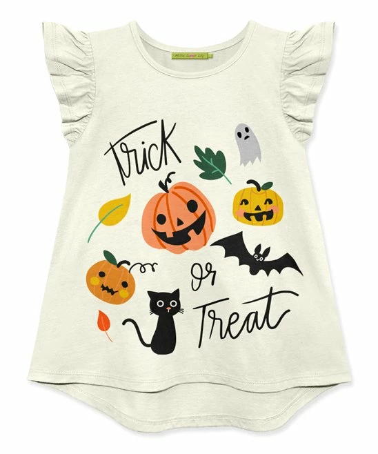 Get the kids ready for ghoulishly good times with this ruffle-accented all-cotton angel-sleeve hi-low top that features a spooky graphic.
