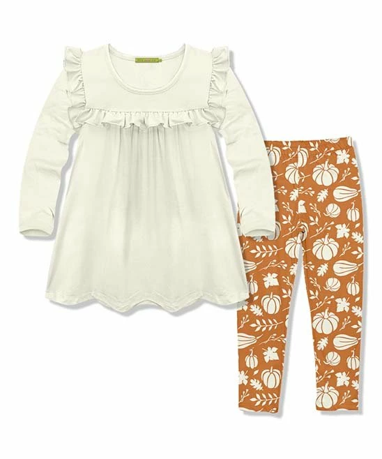 - Includes one cream top and one brown leggings (two pieces total)