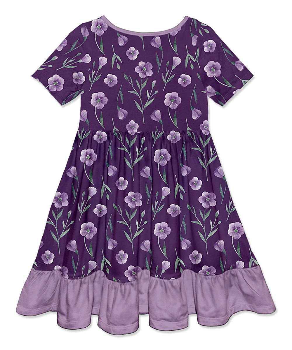 A bevy of buttons and a fabulous full skirt keep this vibrant dress fresh and fun. Stretch-enhanced fabric ensures a comfortable fit throughout the day for your little sweetie.