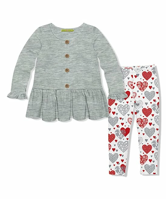 - Includes heather gray tunic, and white and red heart leggings (two pieces total)