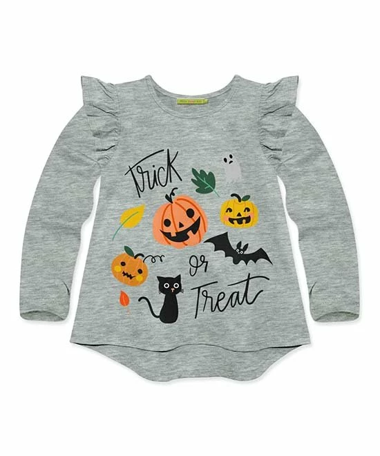 They’ll be spooky and sweet in this soft cotton top offering ruffle shoulders and an adorably scary graphic.