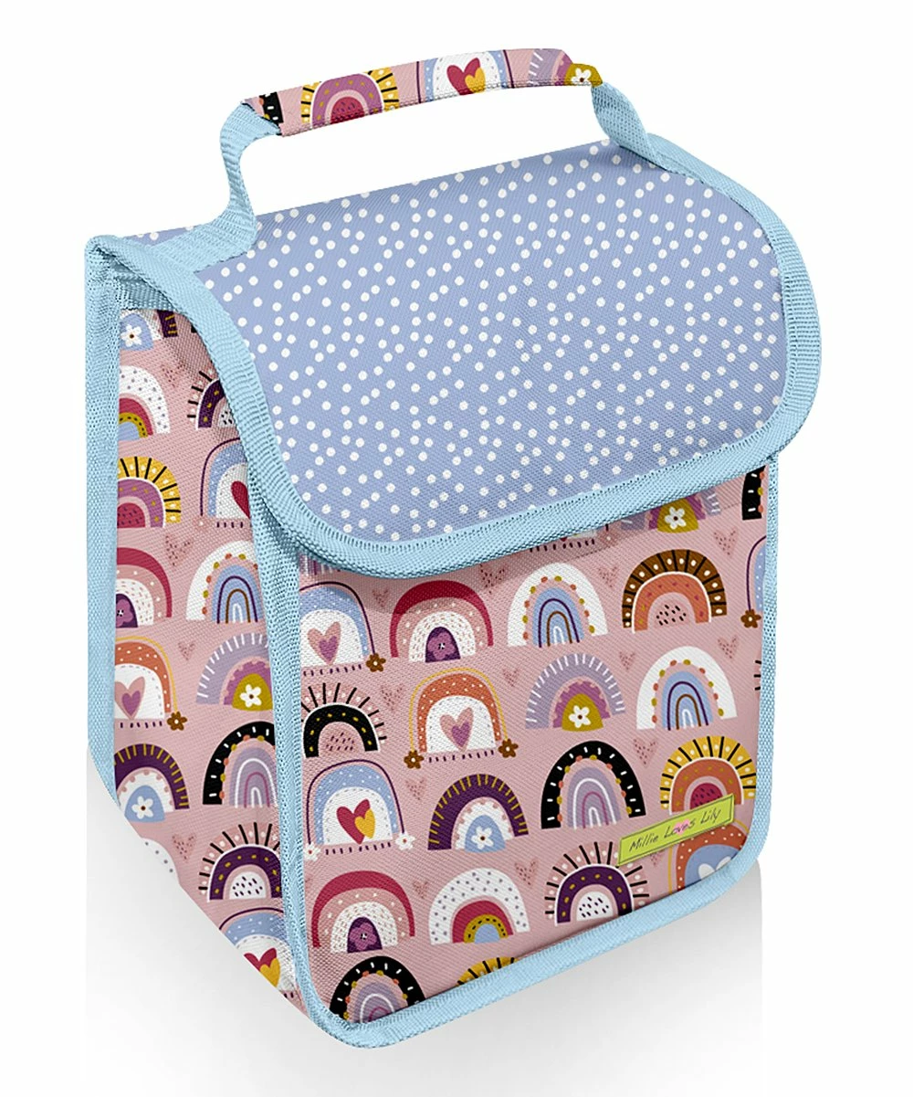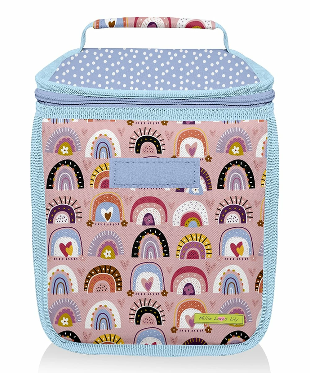 Load up on lunches and snacks for little ones with this zip bag. Patterns of rainbows and dots add adorable appeal.