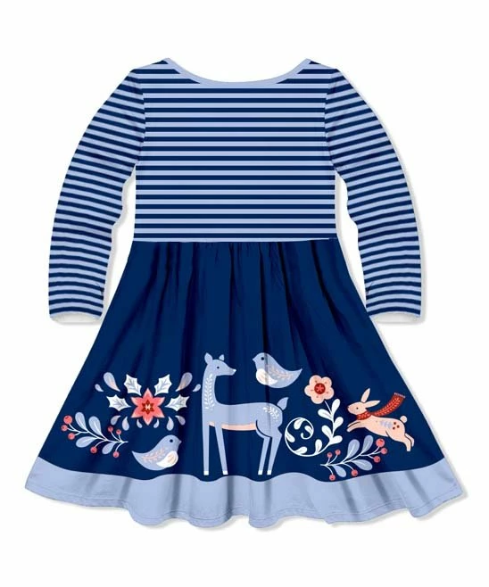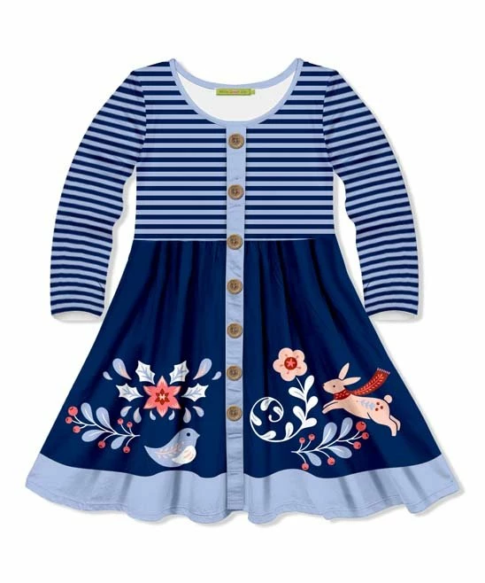 This long-sleeve dress is designed with a button-front detail and playful print.