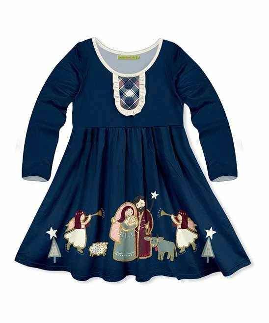 Get your merry one into the spirit of the season with this stretchy A-line dress that flaunts a festive graphic. A ruffled button placket adds a sweet finishing touch.