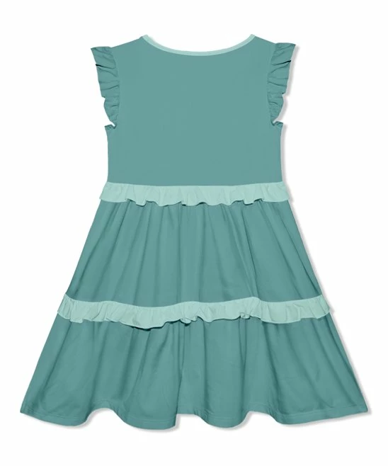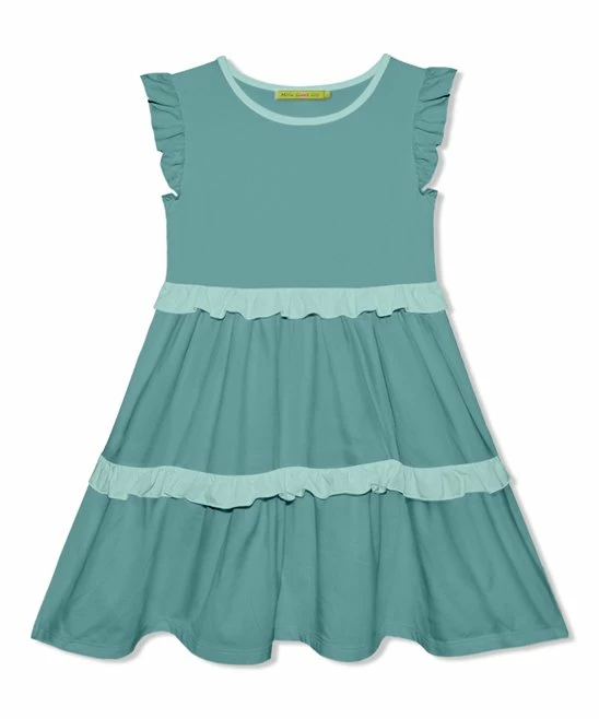 This all-cotton A-line dress has angel flutter sleeves and stripe ruffled tiers.