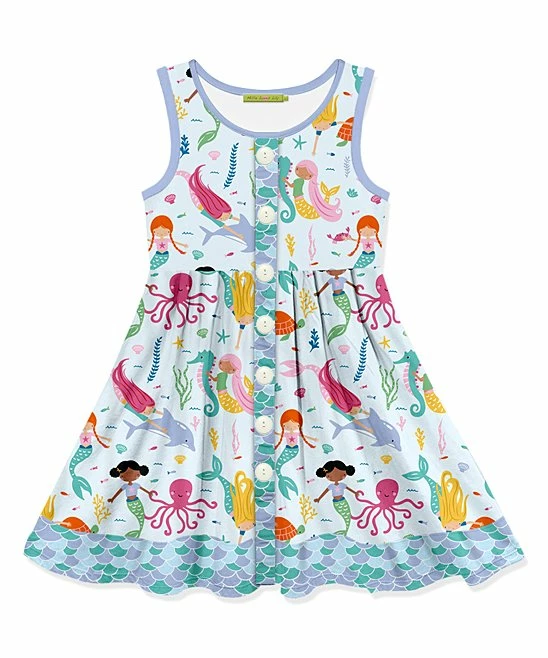 Let your favorite little one be cool, comfy and fashionable in this pretty button-front dress with a whimsical print.