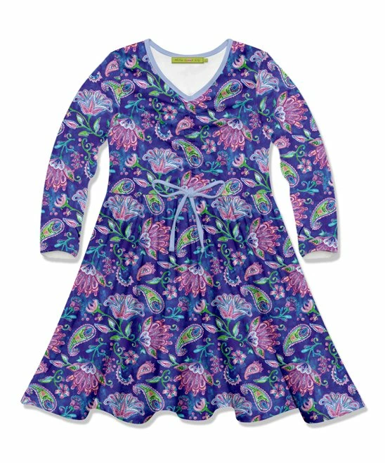 This stretchy cotton-blend A-line dress has long sleeves and a bow accent at the waist for an extra flourish.