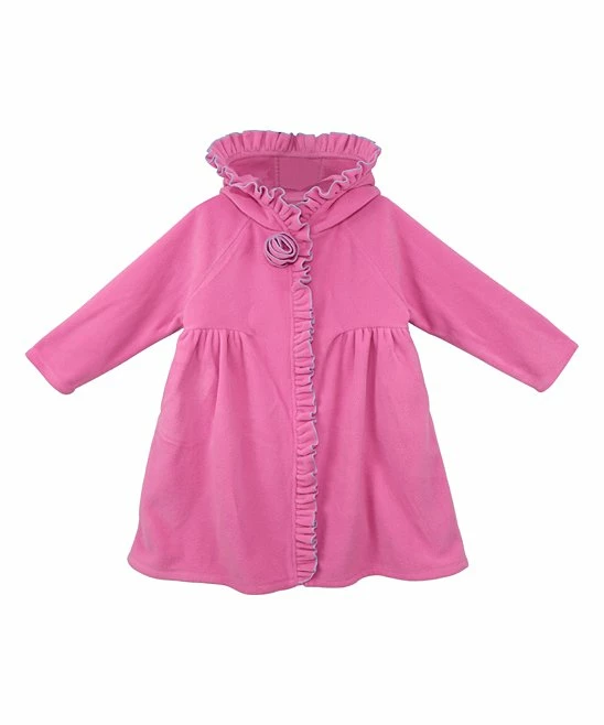 Your little one will love to layer up in this chill-fighting coat featuring a ruffle trim and floral detail.