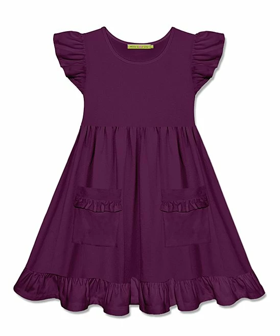 Sweeten their style with this dress featuring angel sleeves, a ruffled hem and front patch pockets.