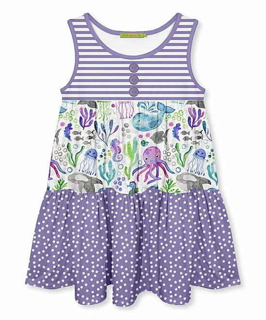 Keep your youngster feeling comfy on warmer days with the airy, sleeveless cut of this breezy A-line dress finished in a bold muti-patterned color block design.