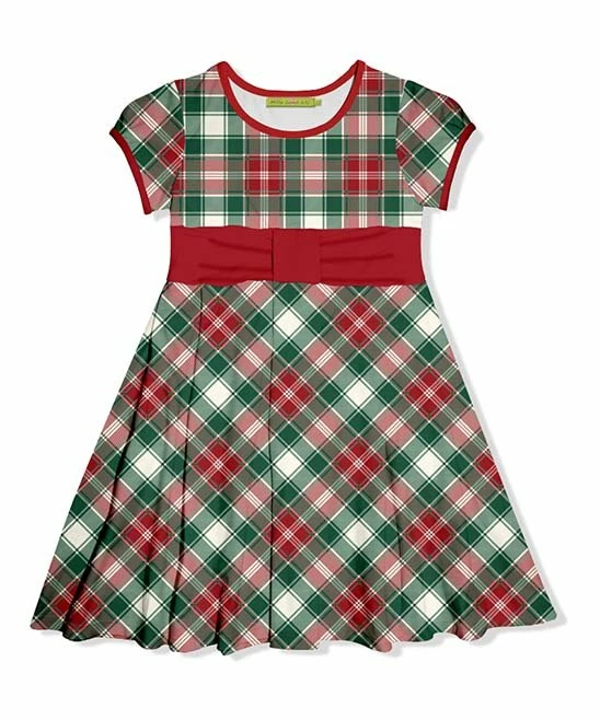 Get your merry one into the spirit of the season with this A-line dress decked out in a festive plaid pattern. A bow at the waist adds a sweet final detail.