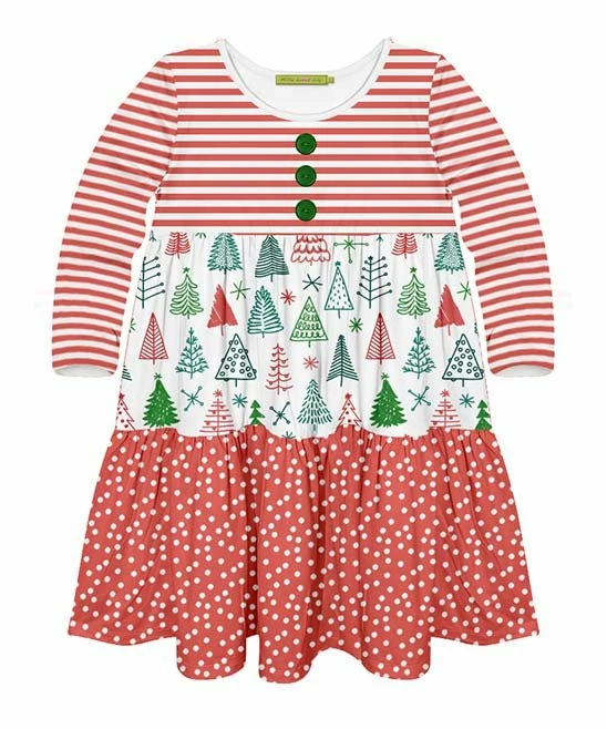 Keep your cutie comfy and ready for play in this tiered shift dress boasting a stretchy fit and fun print.