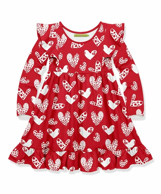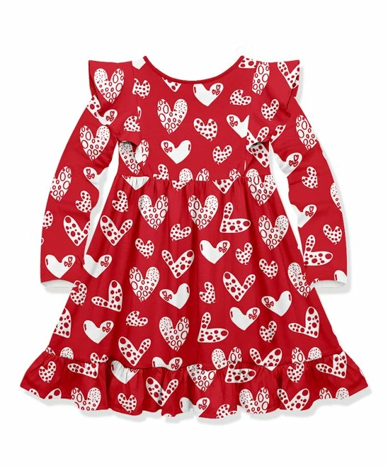 This A-line dress features long sleeves with angel ruffle shoulder accents and a gathered ruffle hem.