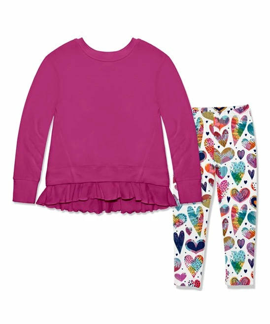 This coordinating ruffle-hem sweater and leggings set will make dressing your young one a snap.