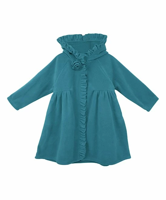 Your little one will love to layer up in this chill-fighting coat featuring a ruffle trim and floral detail.