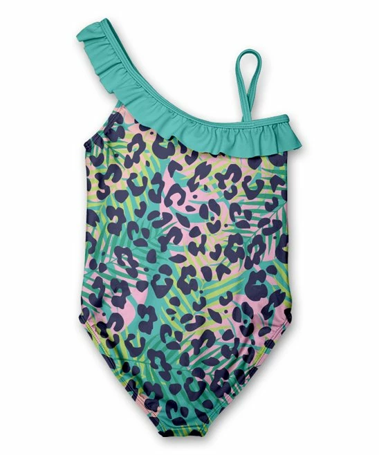 Give your little one something to splash around in with this adorable one piece complete with ruffle accents and a delightful print.