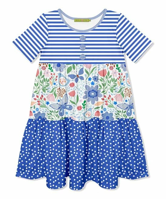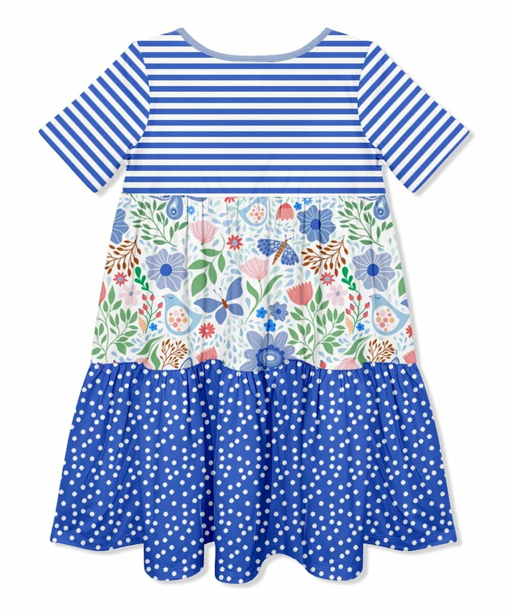 Let your little cutie steal hearts in this charming tiered dress featuring a playful pattern and poised button detail. The stretch-blend material makes it a comfy choice.