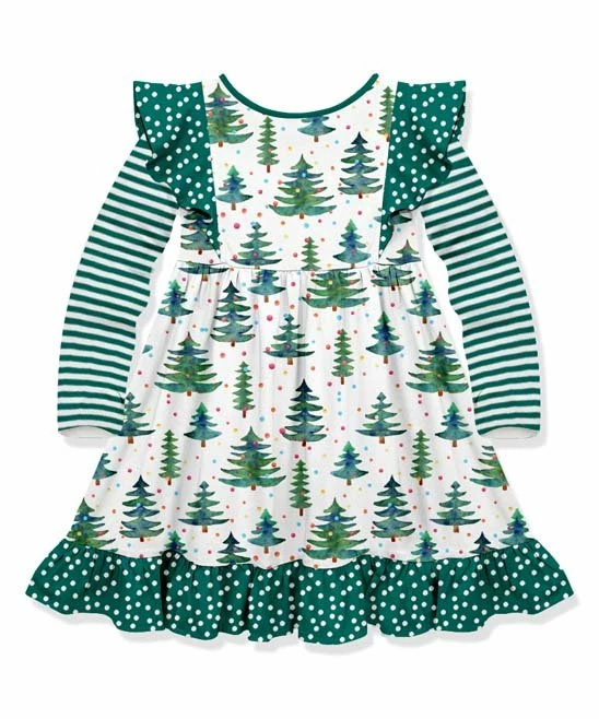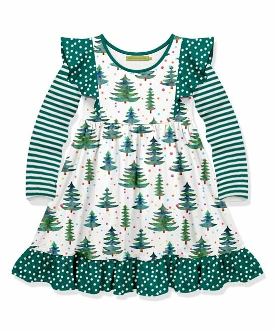Cheapest πŸ₯° Millie Loves Lily White & Green Tree Farm Ruffle-Accent A-Line πŸ‘— Dress – Infant, Toddler & πŸ‘§ Girls For Kids πŸ˜€