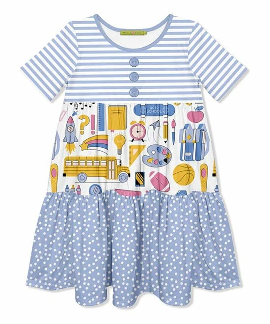 They’ll breeze through the big day in this flowing dress that features tiered panels boasting clashing prints.