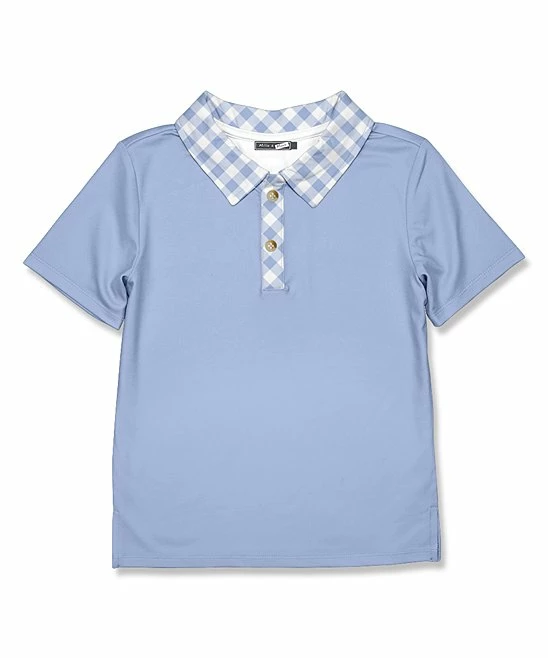Composed of a flexible stretchy blend, your little one has countless hours of play ahead of them in this adorable gingham-collared polo.
