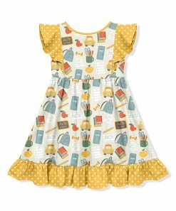 Coupon 🤩 Millie Loves Lily Yellow & Beige School Bags Angel-Sleeve 👗 Dress – 👧 Girls For Kids 🌟