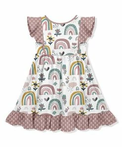 Discount ⌛ Millie Loves Lily White & Mauve Rainbow Angel-Sleeve 👗 Dress – Toddler For Kids ⭐