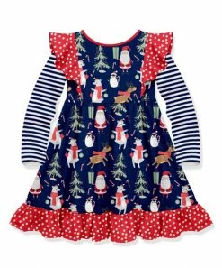 Buy 👍 Millie Loves Lily Navy Woodland 🎄 Christmas Long-Sleeve A-Line 👗 Dress – 👧 Girls For Kids 🎁