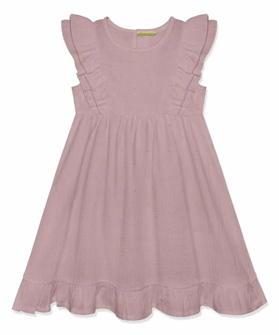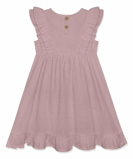 Keep them cool in this gauze cotton sleeveless dress that offers layered ruffles and buttons on the back.