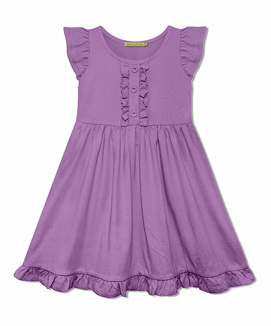 Your little one can run and play on a sunny day in the comfort of this angel-sleeve dress featuring a flowy ruffle hem and breathable fabric.