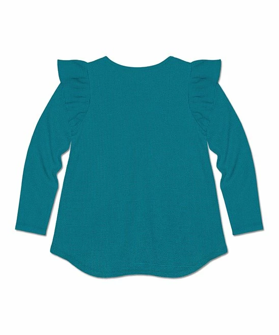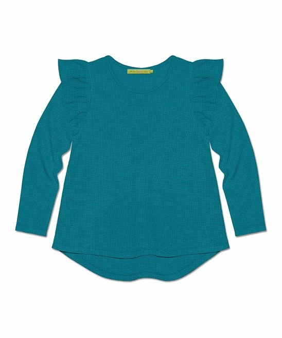Boost your darling’s everyday ensembles with this long-sleeve top enhanced with playful ruffle details and a sweet hi-low hem.
